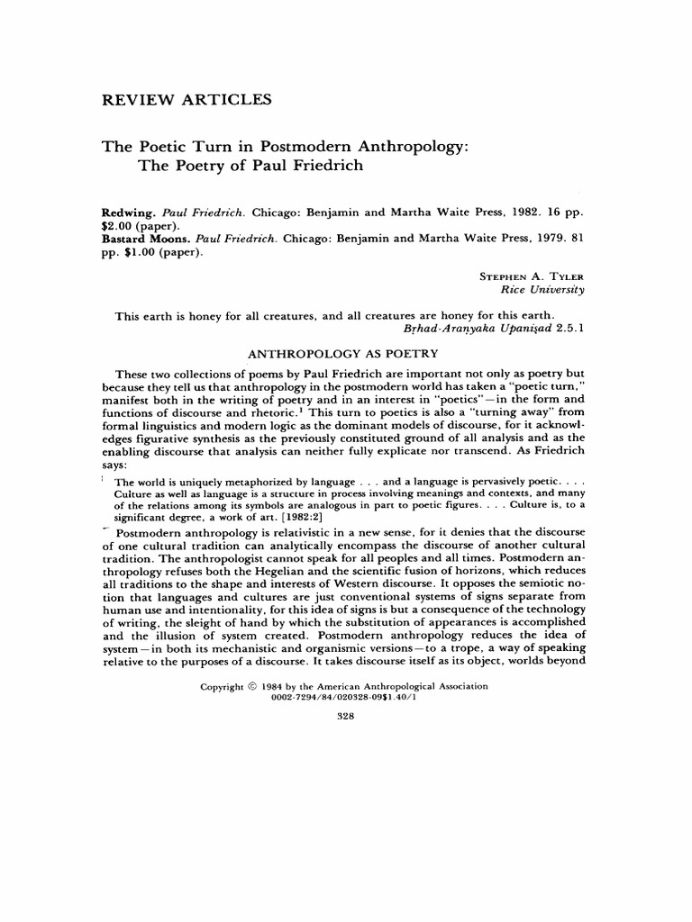 19/09/2017?? Anthropological poetry is the application of the study of human societies, cultures and their development into poetry writing, which should help anthropologists and poets to ?